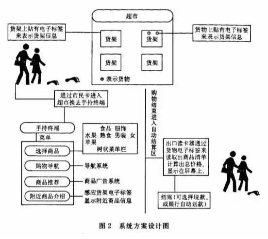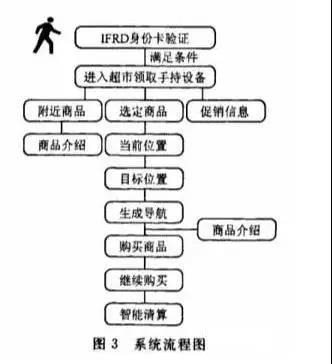 整個智能超市系統由身份識別、搜索導航、信息讀取、廣告推送、智能清算5部分組成。