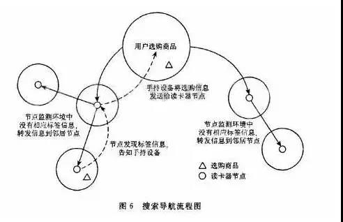 超市范圍內安裝一定數量的讀卡器就是該中間系統的重要組成部分,同時為每一個進入超市選購商品的顧客配置一個手持設備,顧客在手持設備上輸人所需的商品名稱,手持設備與超市中的讀卡器通過中間件操作系統通信,發布自己的信息,讀卡器發布路由信息到手持設備引導顧客前往所需購買的商品處。